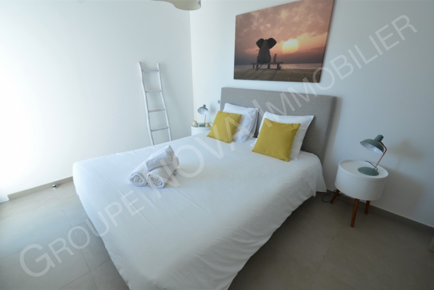 Cette location de 63 m² climatisée entièrement, dispose d'une chambre double avec un couchage 160 X 200, une chambre gigogne avec lit superposé 90 X 200 et un canapé convertible en 160 X 200 qui peut être utilisé au cas d'un séjour pour 6 personnes, salle de bains avec très grande douche 160 x 90, WC indépendant.